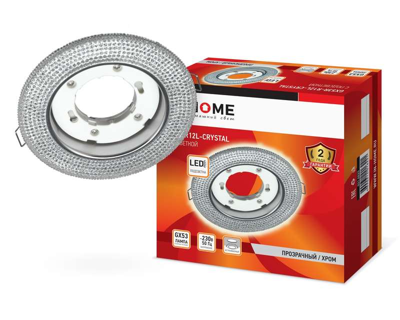 Светильник точечный GX53R-crystal R12L GX53 IP20 230В встраив. с подсветкой прозр./хром. IN HOME 4690612016221 — светильник встраиваемый потолочный и настенный оптом