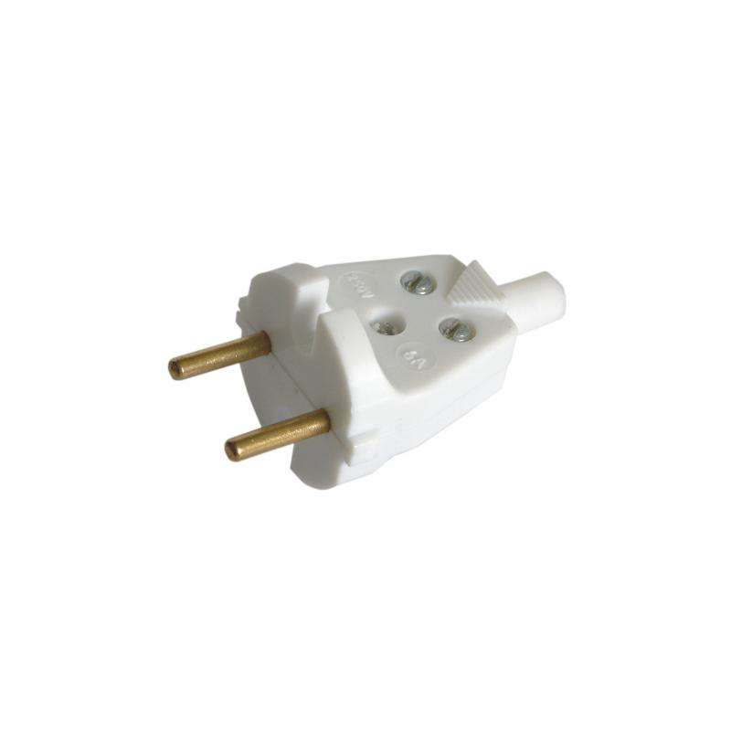 Вилка электрич. без заземл. бел. 6А 250В IP20 бел. с кембр. БЕЛТИЗ В6-001 – электроустановочный аксессуар, устройство подключения к сети бытовых электроприборов.