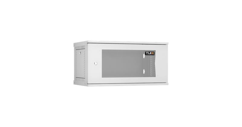 Шкаф настенный 19дюйм 6U стекл. дверь Ш600хВ303хГ350мм 1 пара монтаж. направляющих разборн. сер. TLK TWI-066035-R-G-GY — телекоммуникационный шкаф оптом