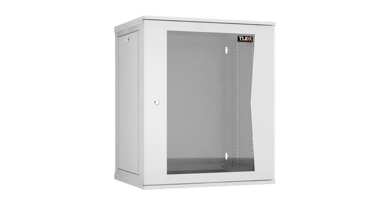 Шкаф настенный 19дюйм 15U стекл. дверь Ш600хВ703хГ450мм 1 пара монтаж. направляющих разборн. сер. TLK TWI-156045-R-G-GY — телекоммуникационный шкаф оптом