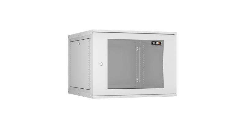 Шкаф настенный 19дюйм 9U стекл. дверь Ш600хВ436хГ600мм 2 пары монтаж. направляющих разборн. сер. TLK TWI-096060-R-G-GY — телекоммуникационный шкаф оптом