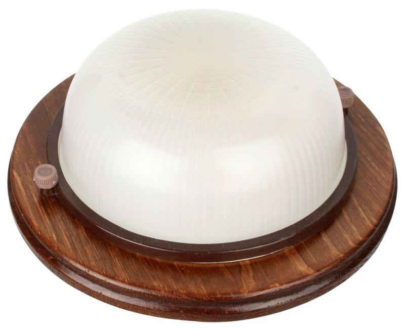 Влагозащищенный светильник Camelion 1302D Цвет ОРЕХ, круг, «Открытый», размер 220х220х84мм, источник света — ЛОН, тип лампы — 60/А/Е27, патрон — E27, мощность 60Вт, 230 В, 50 Гц.