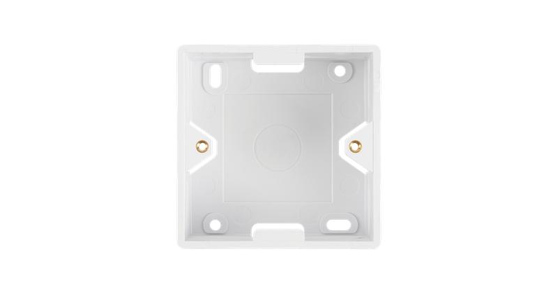 Коробки NMC-BB80X80-WT для настенного монтажа предназначены для установки на них лицевых панелей, а затем последующей установки на этих лицевых панелях модулей необходимого формата для организации информационных портов на рабочем месте. Чаще всего лицевые панели устанавливают плагины Keystone под порты RJ-45, а также любые другие вставки формата Keystone.