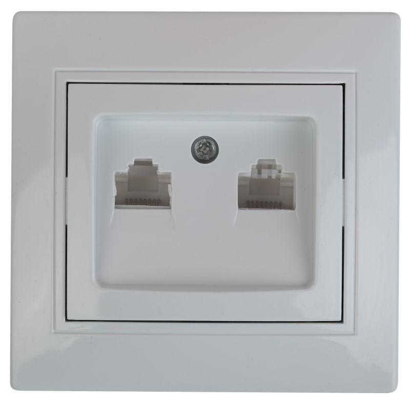 Розетка RJ45 серии Intro Plano скрытой установки цвет белый 1-304-01. Номинальные характеристики . Розетка выполнена из термопласта, укомплектована одноместной рамкой. Для установки 2-х и более устройств в несколько подрозетников в ряд дополнительно используются многоместные рамки: 2-х постовая — 1-502-хх, 3-х постовая 1-503-хх, 4-х постовая — 1-504-хх (где хх — цветовой код: 01 — белый, 02 — слоновая кость, 03 — алюминий, 04 — шампань, 05 — антрацит, 10 — венге, 11 — сосна).