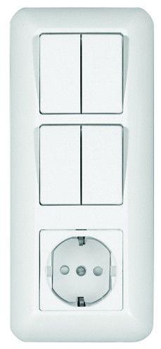 Блок комбинированный Schneider Electric ПРИМА (скрытой установки, белый) предназначен для сетей до 250 В, состоит из розетки на 16 А со шторками и с заземлением и двух двухклавишных выключателей, оба на 6 А.