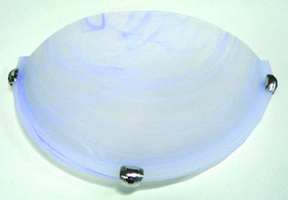 Представляет собой настенный осветительный прибор с полукруглым плафоном из алебастрового стекла, матово-голубого цвета, с разводами, арматура армированная, цвета металлик. Возможно крепление на потолке.