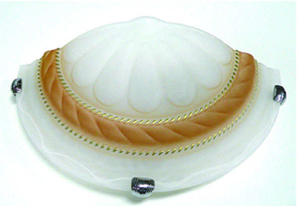 Представляет собой настенный осветительный прибор с полукруглым плафоном в форме ракушки, из алебастрового стекла, матово-дымчатого цвета, арматура армированная, цвета металлик. Возможно крепление на потолке.