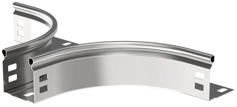 Отвод Т-образный плавный предназначен для организации Т- или Х-образного горизонтального отвода кабельной трассы. Также аксессуар применяется для Т-ответвления вниз в вертикальной плоскости без применения крышки. Крышка аксессуара в комплект не входит.