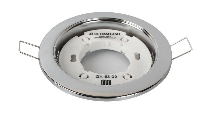 Ultraflash GX-53-02 хром, размер 21х106х84мм, источник света — лампа GX53, патрон — GX53, материал металл+пластик, мощность до 20 Вт, ~230 В, 50 Гц.