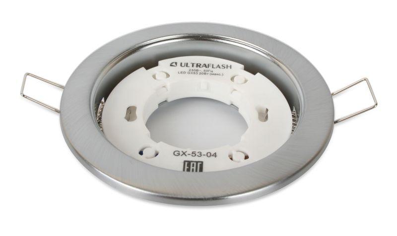 Ultraflash GX-53-04 матовый хром, размер 21х106х84мм, источник света — лампа GX53, патрон — GX53, материал металл+пластик, мощность до 20 Вт, ~230 В, 50 Гц.