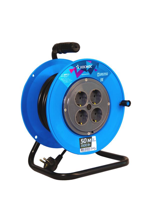 Удлинитель на катушке 50 метров на 4 гнезда. Кабель ПВС 3х1,5мм (с заземлением). Максимальная мощность подключения 3500 Вт (16А) благодаря сечению провода 1,5 мм.. Удлинители 16А подойдут для мощного прибора или инструмента, либо для одновременной работы нескольких инструментов средней мощности. Заземление обеспечит электрозащиту для приборов с металлическим корпусом. Удачный выбор для цеха или мастерской. Прочная стальная рама. Произведено в России.