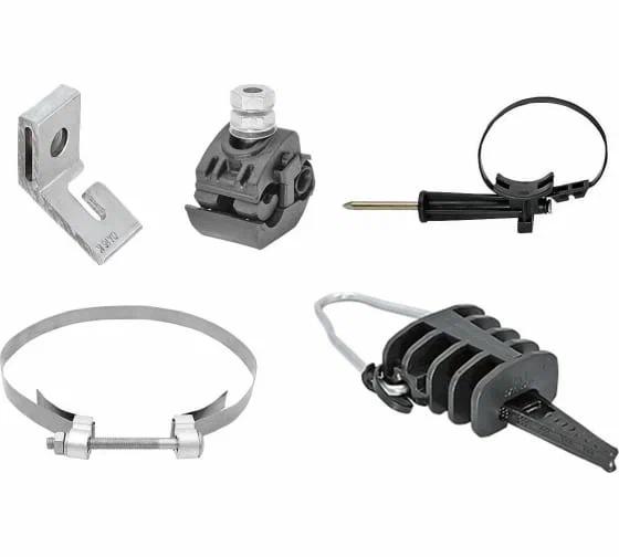 1 фазный комплект абонентского подключения НИЛЕД 14200401 для однофазного ввода электричества в дом проводом 2х16 мм2. Комплект состоит из изделия для опоры и фасада: абонентские кронштейны, крепежный хомут, зажимы для проводов ввода, фасадное крепление, ответвительные зажимы.