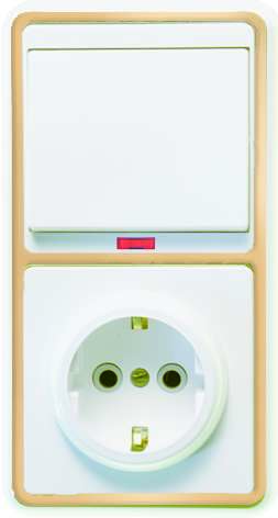Блок БКВР-056 Бэлла (1-кл. выкл. с подсветкой + розетка с заземл.) зол. Кунцево 5822 — блок "выключатель-розетка" оптом