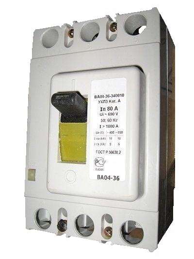 Выключатель автоматический 3п 80А Im=1000А 20кА ВА04-36 340010 660В передн. подкл.: Cu шина; кабель с каб. наконечн. Контактор 1020710 — выключатель автоматический силовой оптом