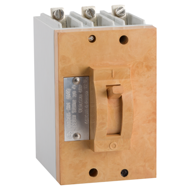 Силовой 3 полюсный автоматический выключатель переменного тока в литом корпусе на номинальный ток 20 А.