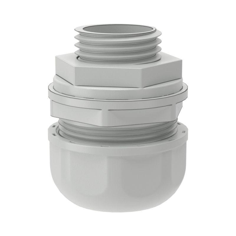 Переходник «Армированная труба — коробка» для герметичного соединения гибких армированных труб с ответвительными коробками, корпусами шкафов и боксов. Диаметр — 14 мм. Материал: полипропилен. Степень пыле- и влагозащиты IP65. Цвет серый RAL 7035. Элемент системы может эксплуатироваться при широком диапазоне температур: от –25°С до +60 °С.