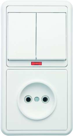 Блок БКВР-213 Бэлла (2-кл. выкл. с инд. + розетка) бел. Кунцево 5829 — блок "выключатель-розетка" оптом