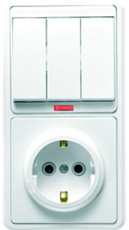 Блок БКВР-054 Бэлла (3-кл. выкл. с подсветкой + розетка с заземл.) бел. Кунцево 5845
