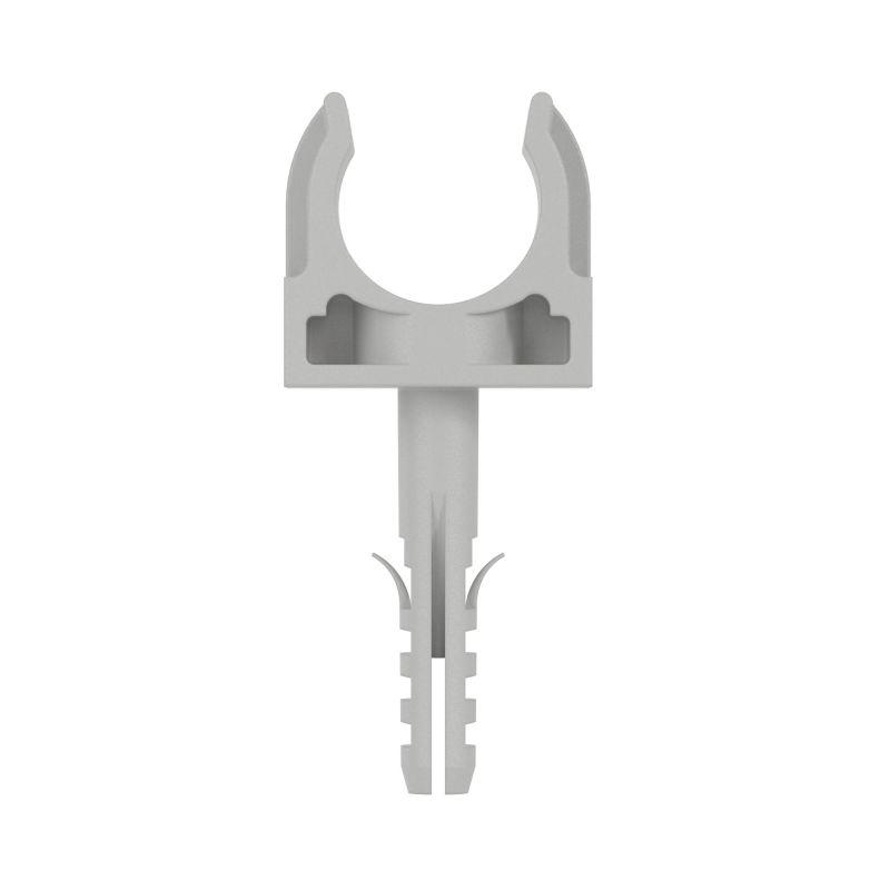 Держатель с защелкой и дюбелем предназначен для крепления жестких гладких и гофрированных труб к поверхности стен, потолков, полов и перегородок. Диаметр — 16 мм. Материал: полипропилен. Цвет серый RAL 7035. Элемент системы может эксплуатироваться при широком диапазоне температур: от –25°С до +60 °С.