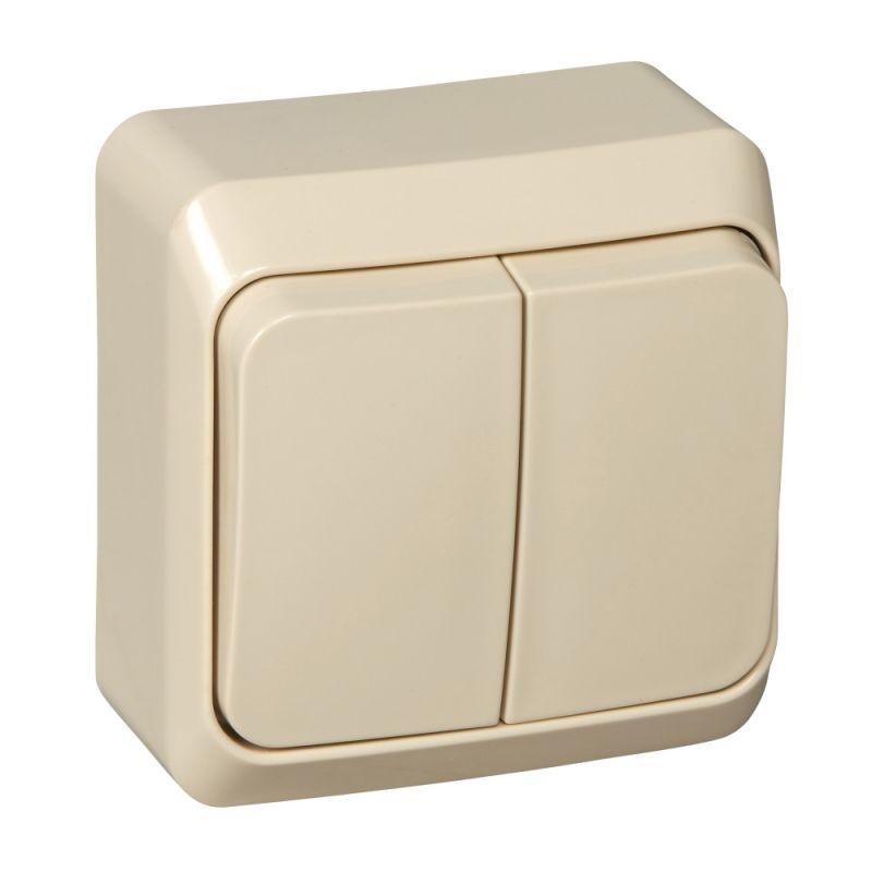 Выключатель Systeme Electric (ранее Schneider Electric) ЭТЮД (кремовый, открытой установки) двухклавишный предназначен для применения в сетях до 250В, на ток до 10А. Наличие подсветки делает его легко находимым при отсутствии освещения. Две клавиши позволяют управлять двумя источниками света с одной точки. Сделано в России.