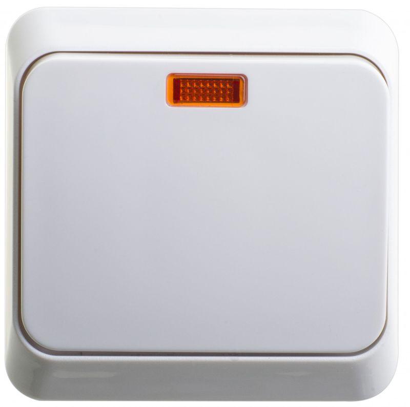 Выключатель Schneider Electric ЭТЮД (белый, открытой установки) одноклавишный кнопочный предназначен для применения в сетях до 250В, на ток до 10А, с подсветкой, что делает его легко находимым при отсутствии освещения. Выключатель подходит для большинства типов ламп, включая люминесцентные. Сделано в России.