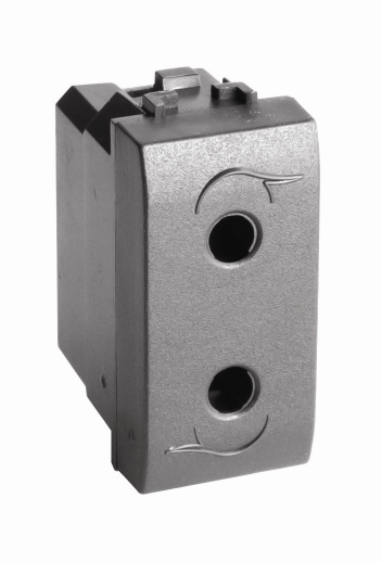 Силовая электрическая розетка штекерная. Назначение: подключение оргтехники, бытовых приборов и т. п. Характеристики: в соответствии с ПУЭ, пункт 7.1.49 — имеются защитные шторки, автоматически закрывающие гнезда штепсельной розетки при вынутой вилке; имеется заземление; диаметр отверстий для ввода кабелей — 3 мм (по 2 отверстия на клемму); номинальный ток — 16 А; номинальное напряжение — 250 B. Кол-во модулей: 1. Цвет: черный